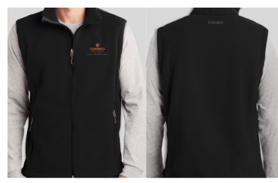 Fleece Vest: Sizes include S - 4XL in both a female and male style. Made of polyester with a pair of front zippered pockets. Embroidered Campbell logo on the front left chest and surgery in dark grey centered on the upper back. These vests would make a perfect gift and provide warmth to the upcoming winter months. These will cost $35 per vest.