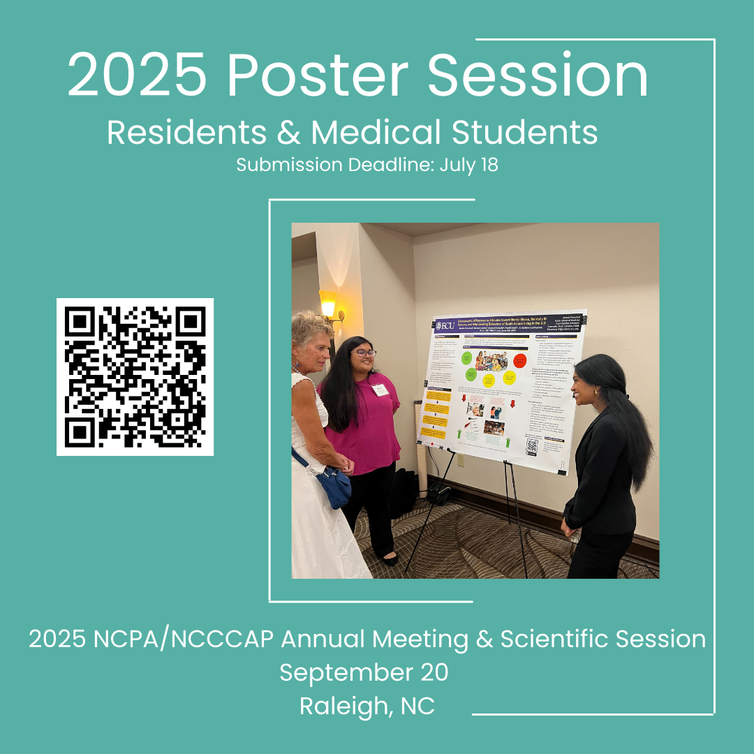 The NC Psychiatric Association would like to announce our premier 2025 Poster Session that will be held at our Annual Meeting and Scientific Sessions on September 20, 2025, for psychiatry residents and psychiatry interested medical students.