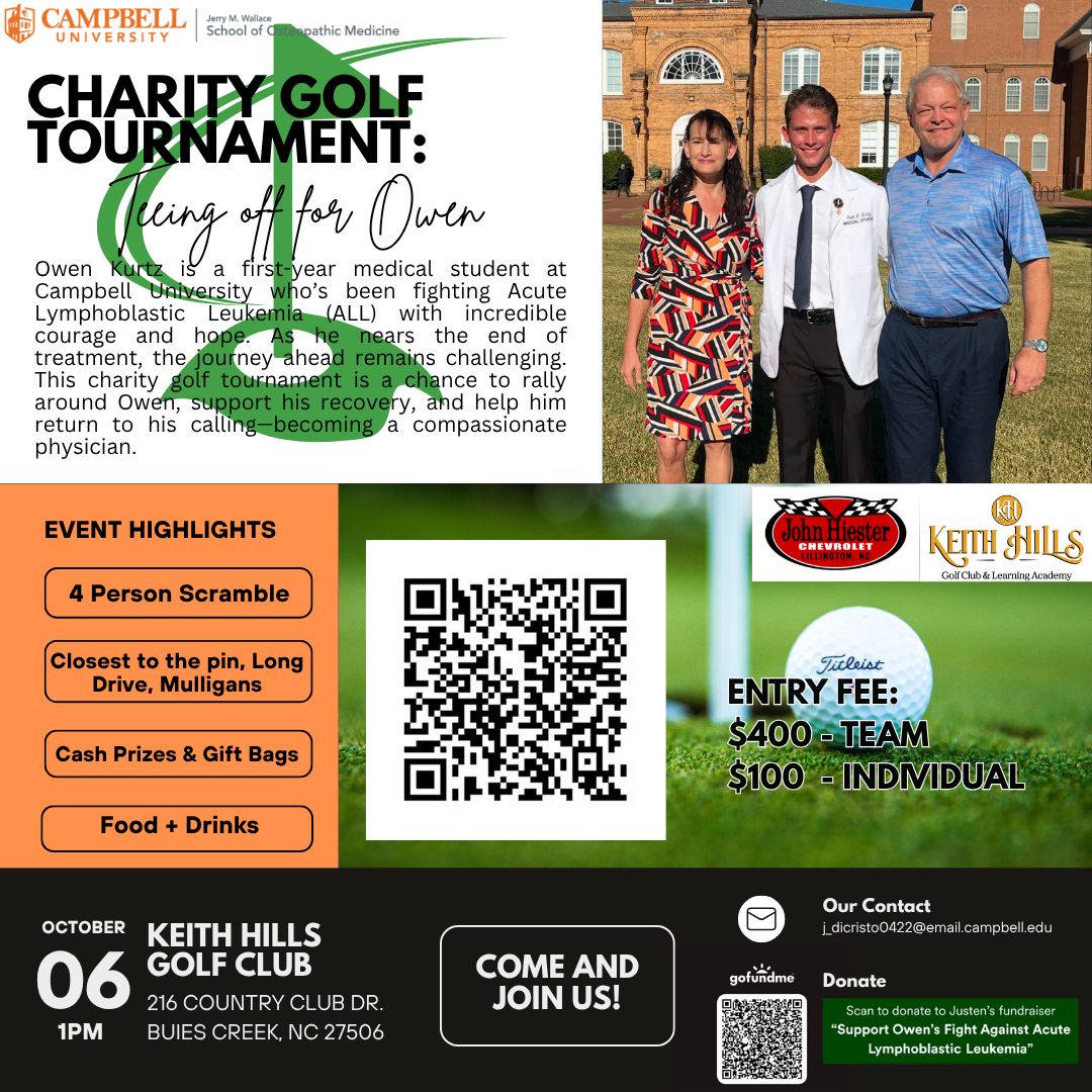 Let’s come together to support Owen’s recovery and help him return to his calling—becoming a compassionate physician. We look forward to seeing you on the course!