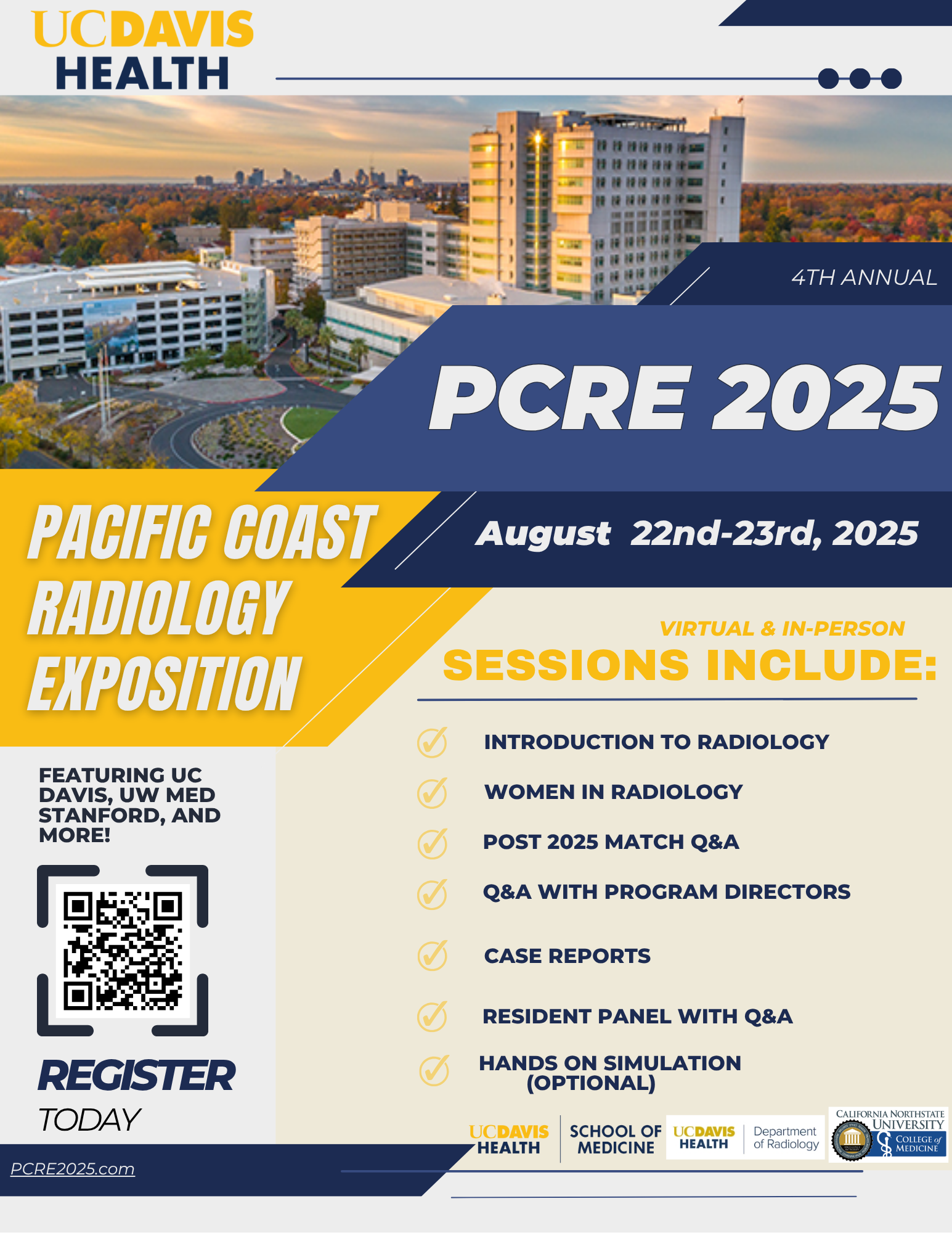 We wanted to send along the link to an exciting opportunity for anyone who may be interested in Interventional or Diagnostic Radiology! The Department of Radiology at University of California Davis is hosting its 4th annual Pacific Coast Radiology Exposition, specifically for medical students.