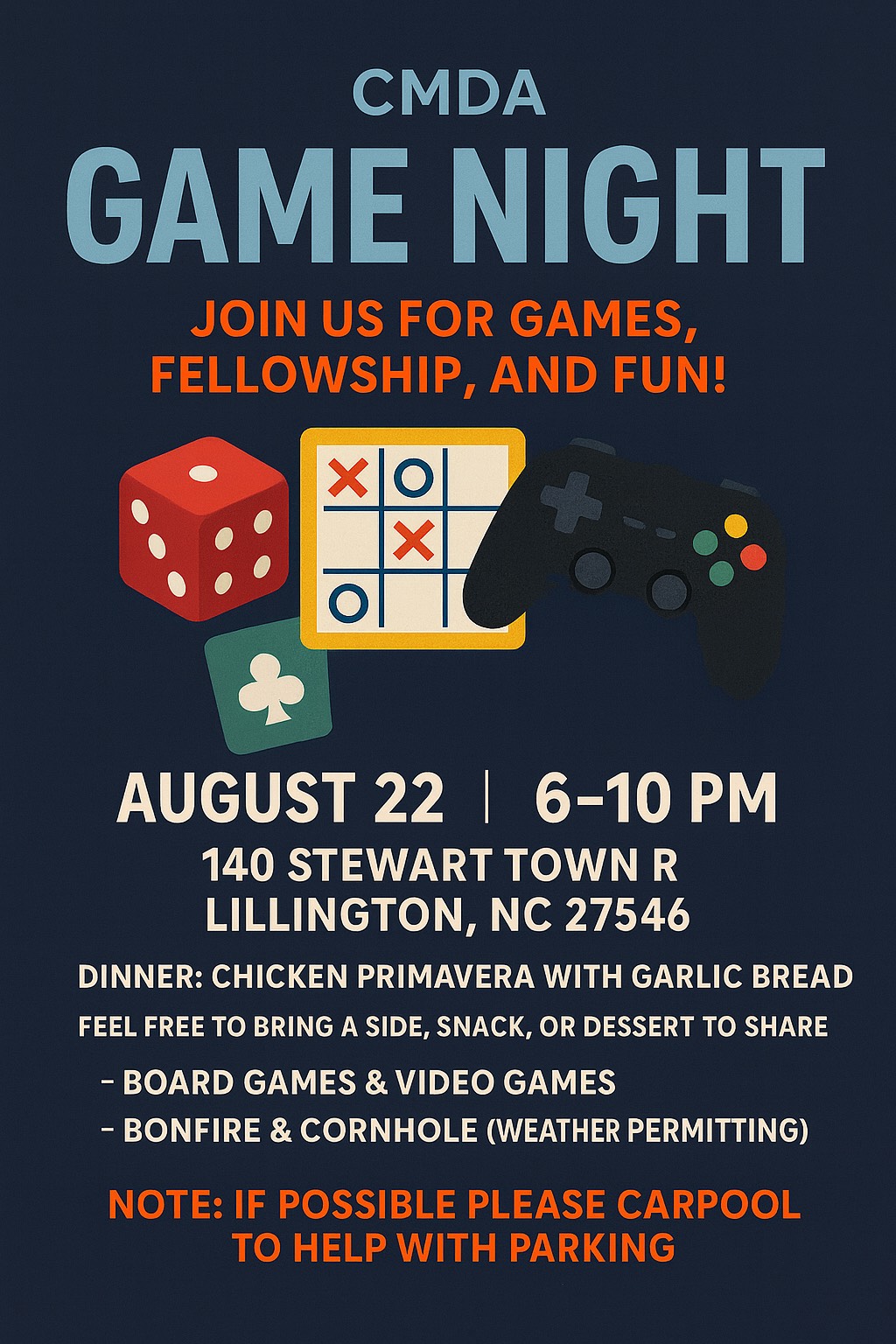 Subject: FW: CMDA Game Night – Let’s Celebrate After Exam One!