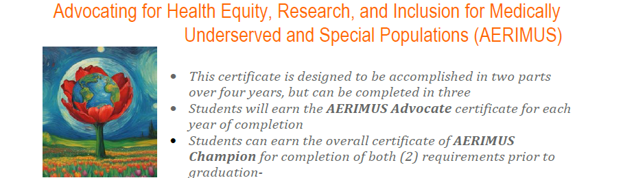 If you have an idea for a project, research, or community outreach that is connected to health equity, medically underserved, or special populations and would like mentorship and guidance to build it, this may be a great vehicle to realize those ideas. Also, if you haven't yet decided whether you'd like to apply for the AERIMUS program, I invite you to attend the meeting and hear about the options, as well as meet representatives from the Schweitzer Fellowship, to decide whether it's a good fit for you.