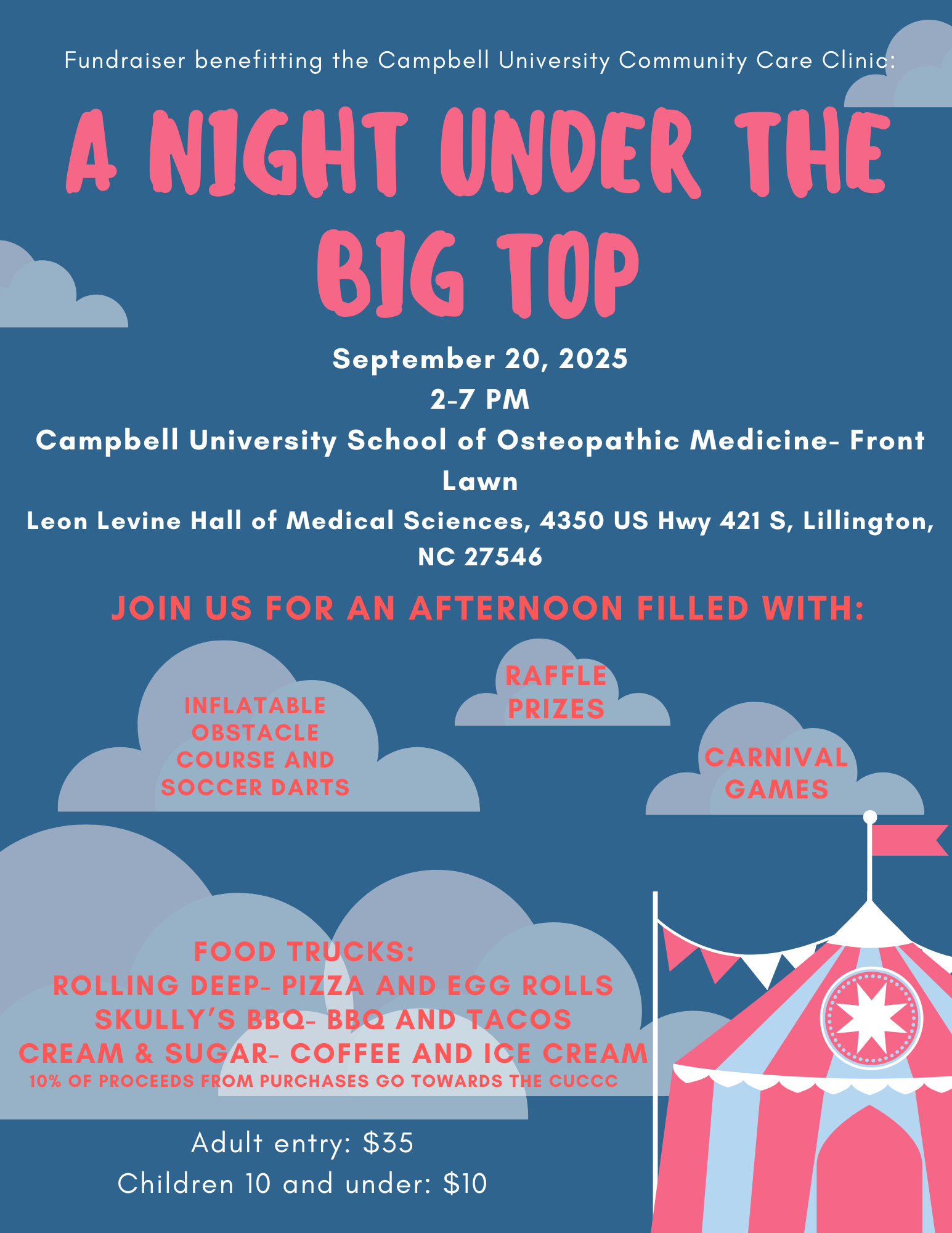 The CUCCC is hosting a carnival on September 20 to raise money for the clinic and we want YOU to be there! Bring your friends and family to enjoy this fun afternoon in front of the medical school. The event will feature food trucks, music, inflatables (waiver must be signed upon arrival), and of course, carnival games!