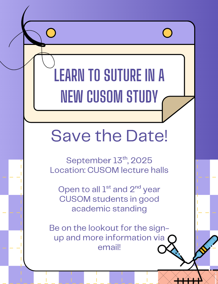 Subject: Save the Date – Suturing Research Project (September 13th)