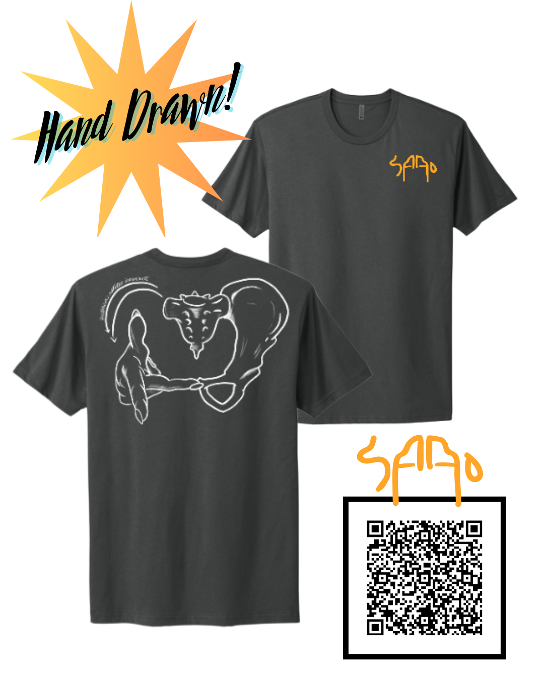SAAO has merch!!!! This T-shirt was hand drawn by me with creative and logistical help from my fellow officers Summer Alexander and Michael Giugliano, both the front logo and the back design. For our first years - the back design is the mnemonic you will use to diagnose the pelvis next block! Orders will be counted next Thursday.