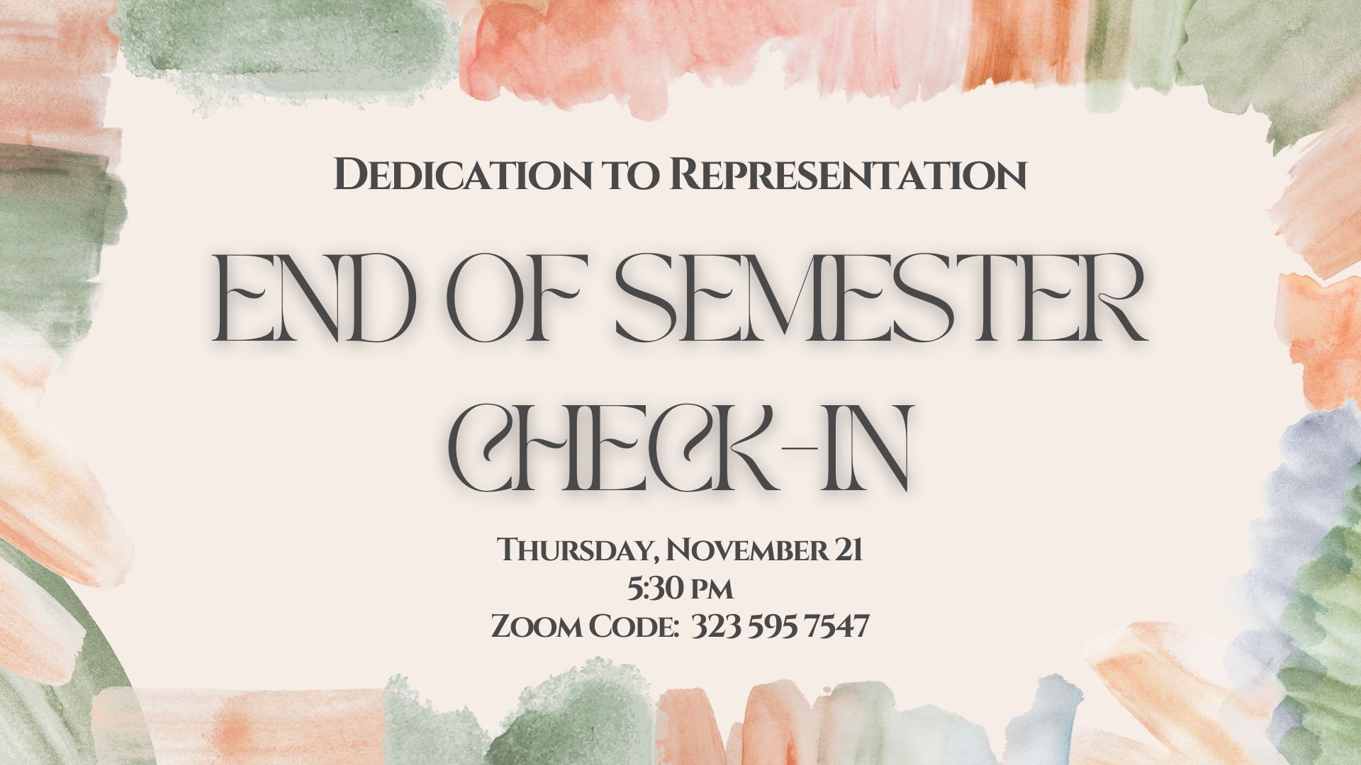 Thursday, November 21st at 5:30 pm! We will review how the semester went,