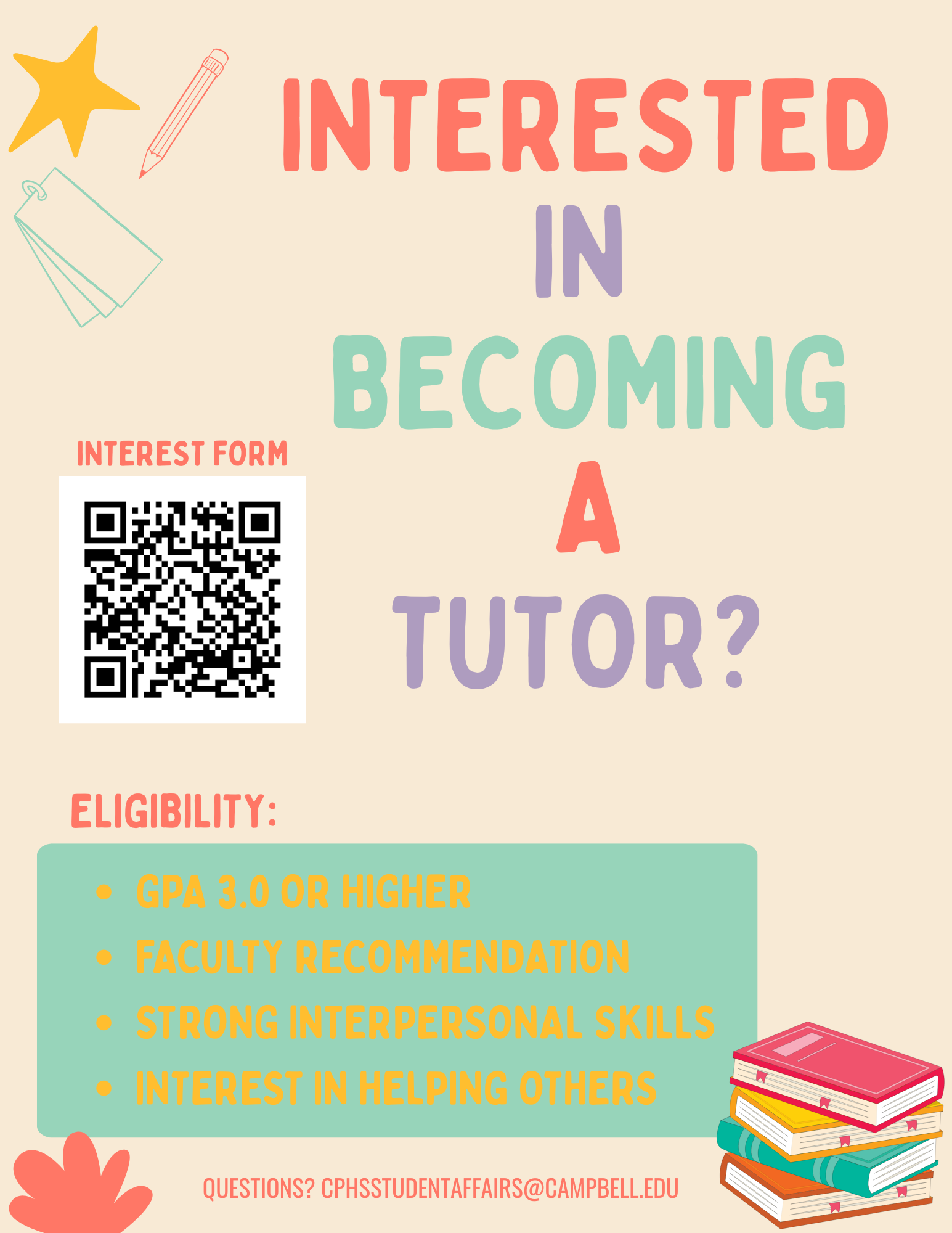 Do you enjoy sharing your passion for learning with others? Do you have a GPA of 3.0 or higher and possess strong interpersonal skills? Then perhaps you should consider serving as a CPHS Student Tutor! Applications are currently being received for the 2025-2026 academic year.