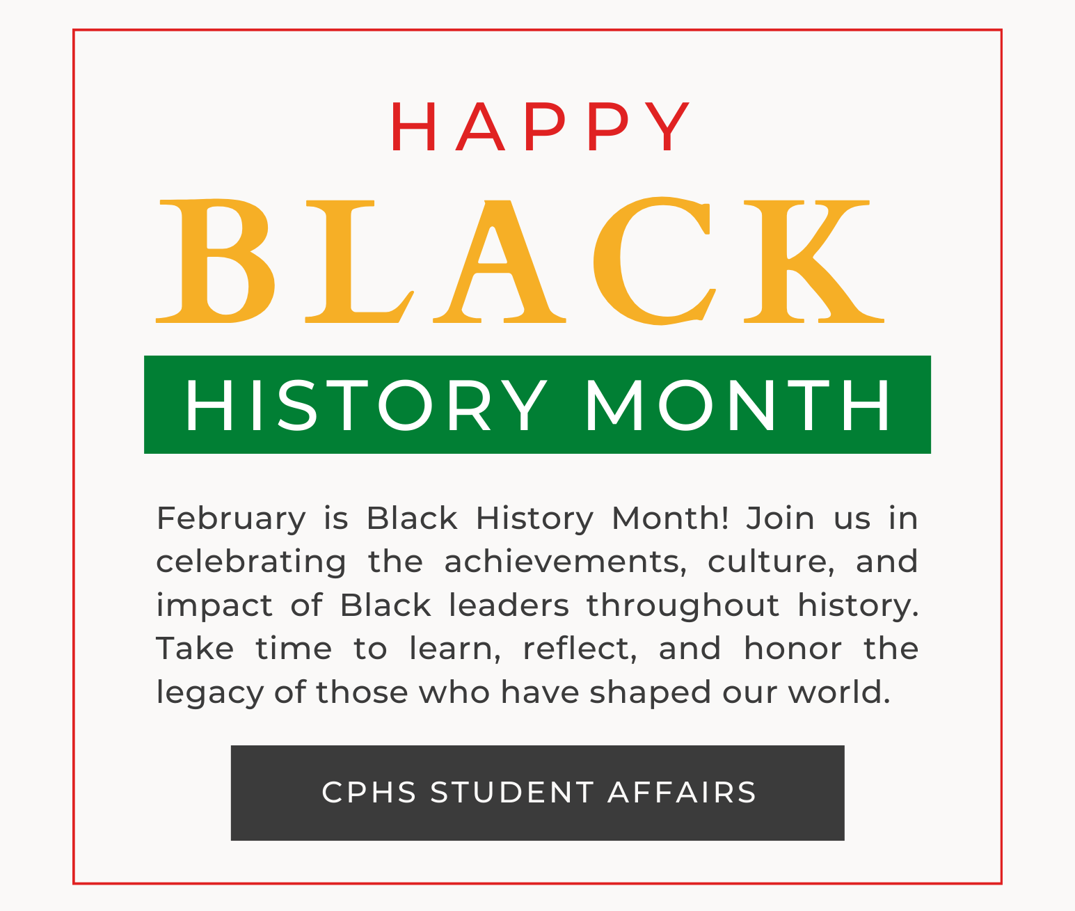 February marks Black History Month, a time to recognize and celebrate the incredible contributions of Black individuals throughout history. In honor of this month, CPHS Student Affairs will be highlighting influential Black professionals who have shaped the various healthcare fields you are pursuing today.
