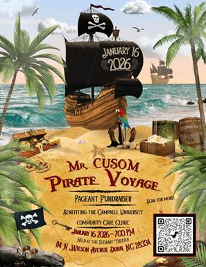 The medical school is hosting their annual Mr.CUSOM pageant this year. As we get closer to the show I wanted to send out some information. We will be hosting our Male Beauty Pageant, Mr.CUSOM, on January 16th at Stewart Theater in Dunn. This is a fundraiser to help the Campbell University Community Care Clinic. More information on the CUCCC can be found on the donations page. I have attached the link to the donation page where you can check out the contestants, make donations, and purchase tickets to the show! I have also included the flyer to give you some more details about the event.