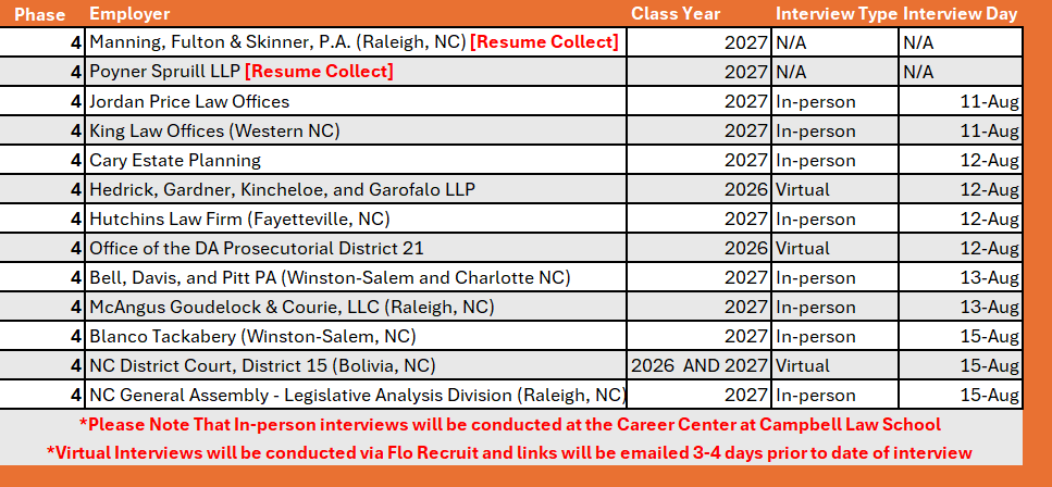 * Fall OCI Phase 4 Interviews [Virtual or In-Person]: August 11 - 15