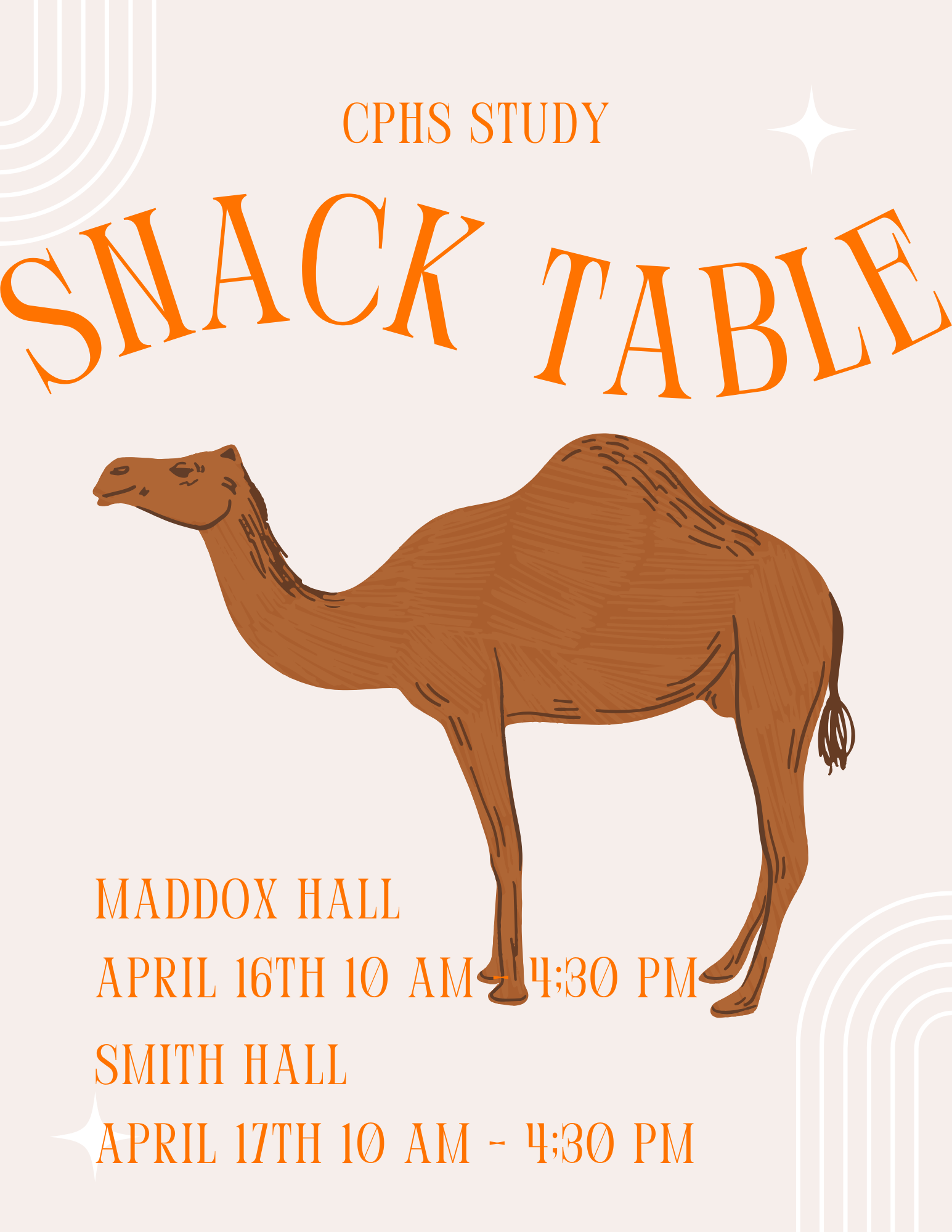 * Student Affairs' annual Study Snack Tables at Maddox Hall and Smith Hall will be held as follows: