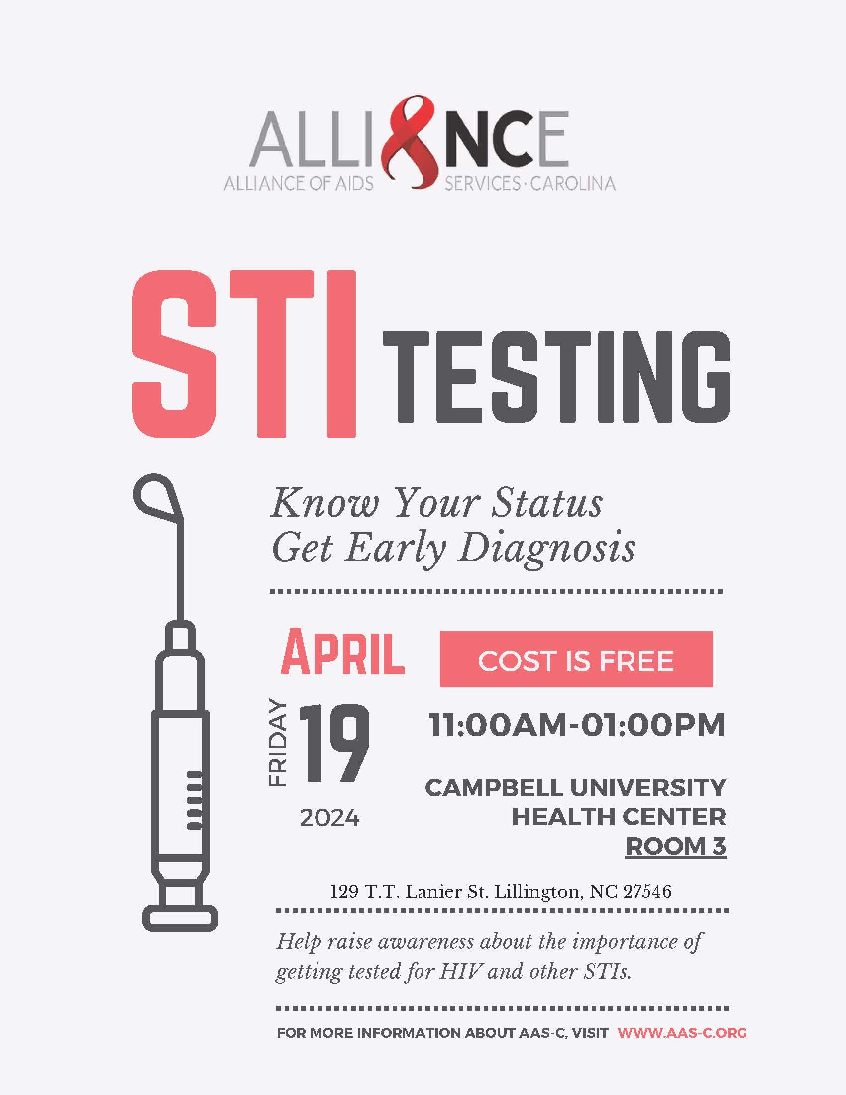 [Pa24] Free STI Testing Clinic Provided by the Alliance of AIDS Services - Carolina