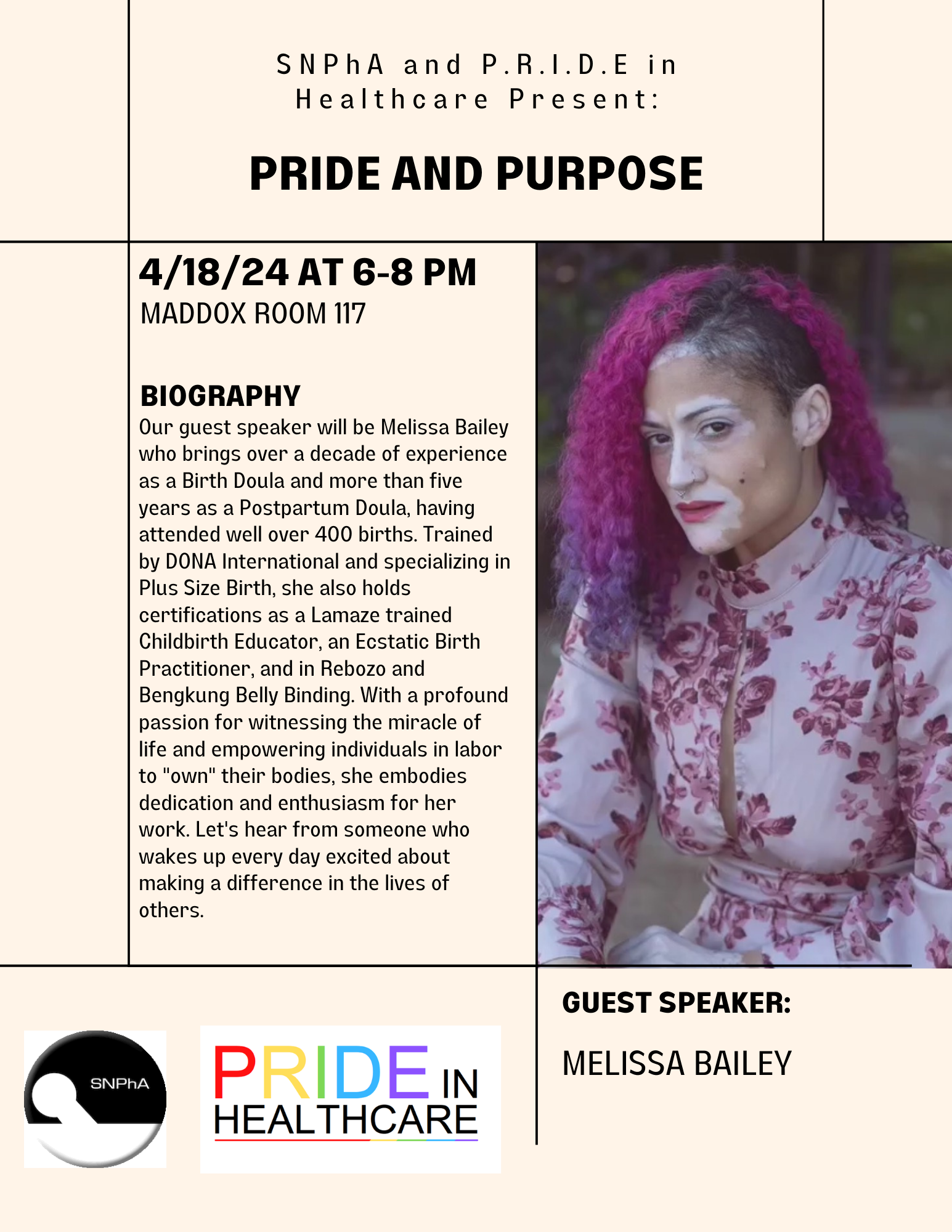 [image: PRIDE and SNPhA 4.18.24 Guest Speaker Event.png]