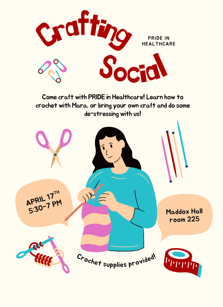PRIDE in Healthcare is hosting a crafting social event on *Thursday, April