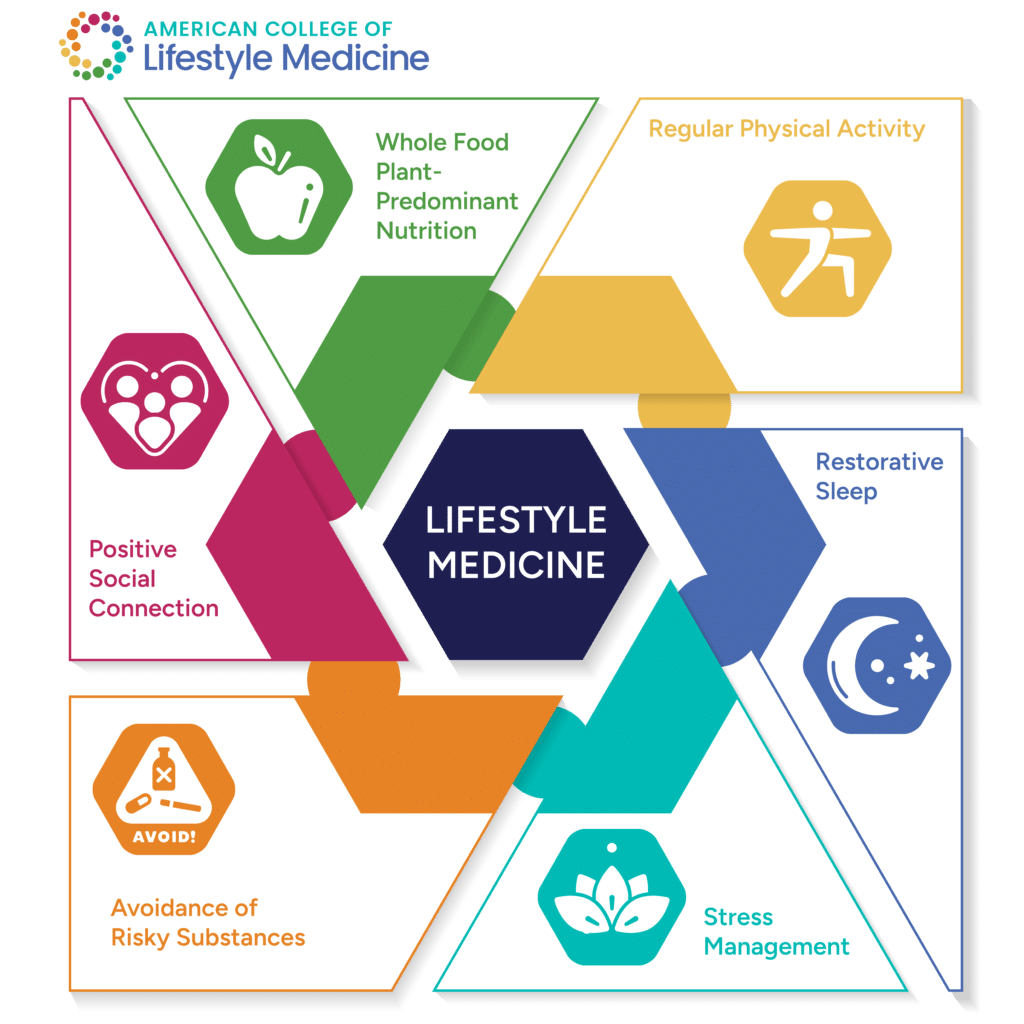 Dr. McGeehan and I are working with CUSOM's Preventative Medicine Club to start a new SIG on using lifestyle for disease prevention and management. Lifestyle Medicine is based on six pillars of health (shown below). If you are interested in learning more, you can visit ACLM's website or see this PDF<https://lifestylemedicine.org/wp-content/uploads/2023/06/Pillar-Booklet.pdf> for a summary of the pillars. We would like this SIG to be an interprofessional group where people with common interests can talk about updates in the literature in this area. Nothing too formal but still should be informative and hopefully fun!