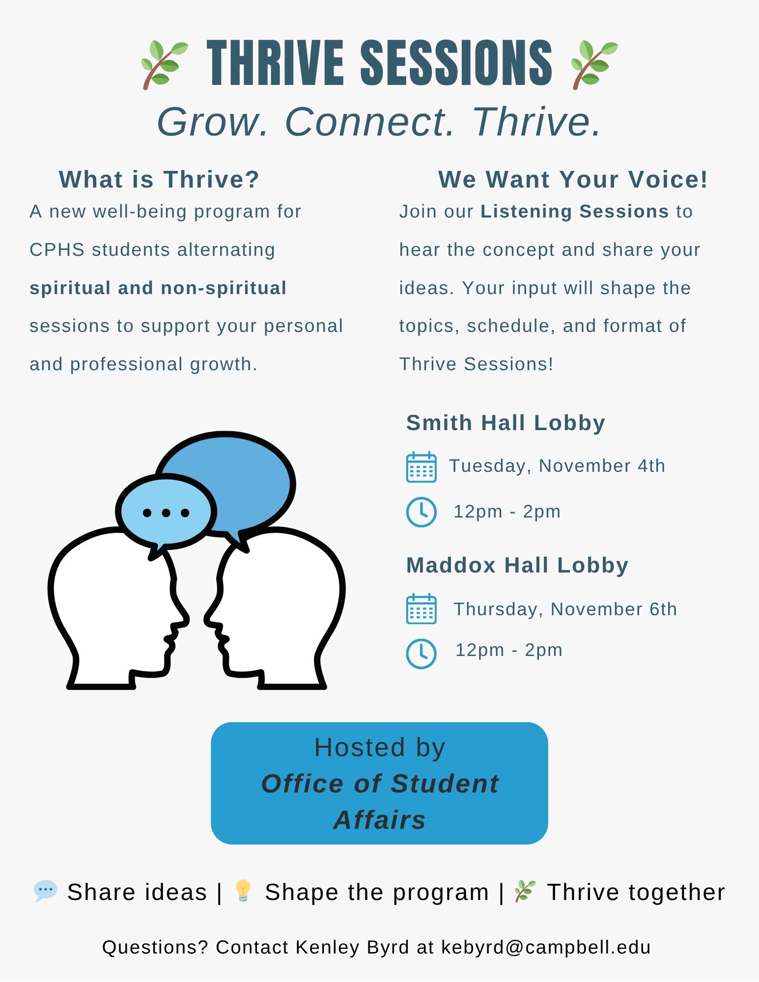 We’re excited to share a new initiative in the works called Thrive Sessions, created to support the well-being of our CPHS students in a meaningful, inclusive way.