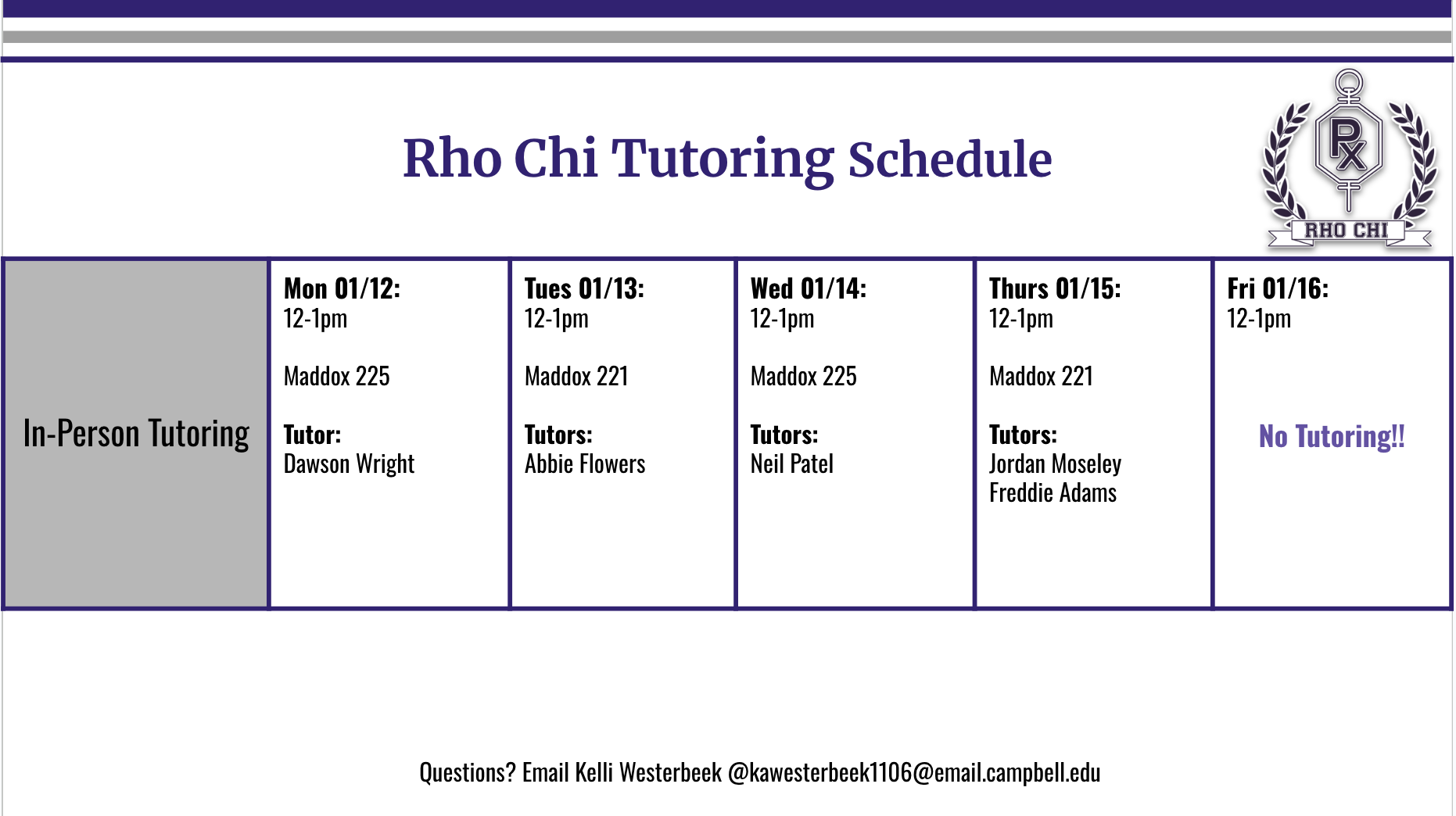 [Pharm27] Rho Chi Schedule 01/12-01/16