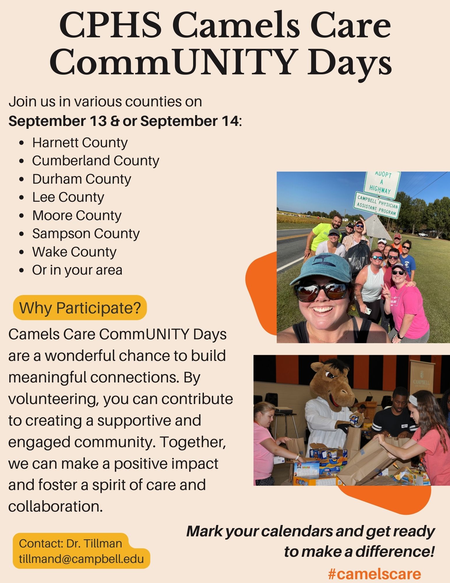 [Phar28] Save the Date: First Annual Camels Care CommUNITY Days Volunteer Opportunities