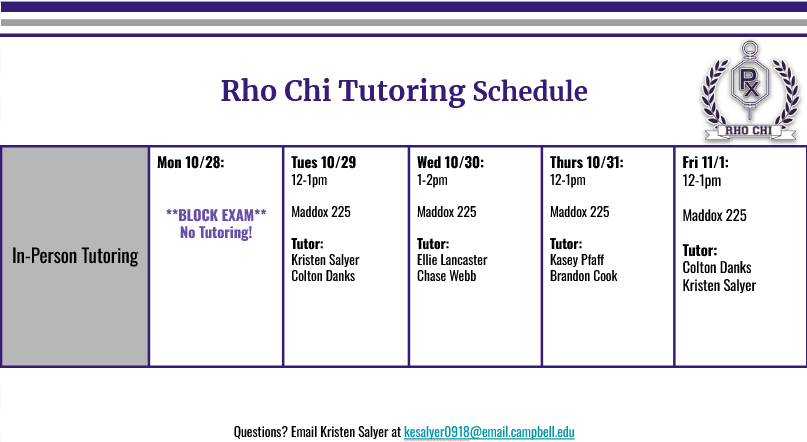 [Phar28] Rho Chi Tutoring 10/29-11/1