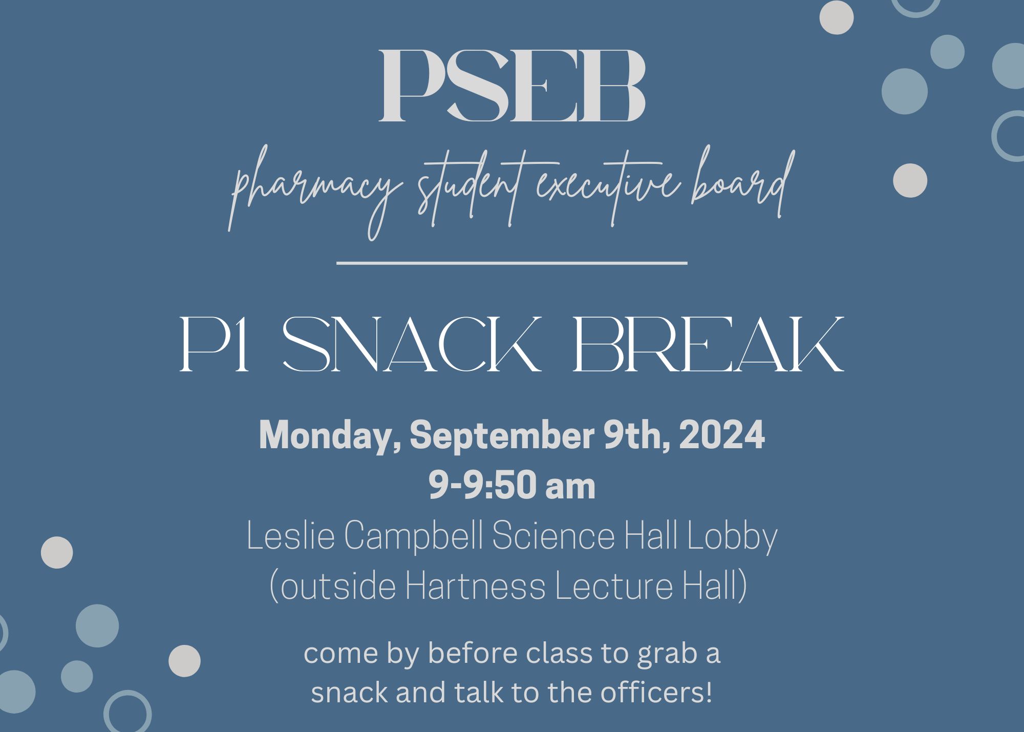 I wanted to remind you of the P1 Snack Break that PSEB is hosting for you