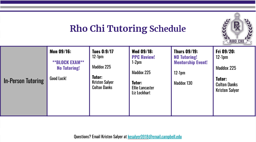 I hope the block exam went well! Below are Rho Chi's tutoring hours this
