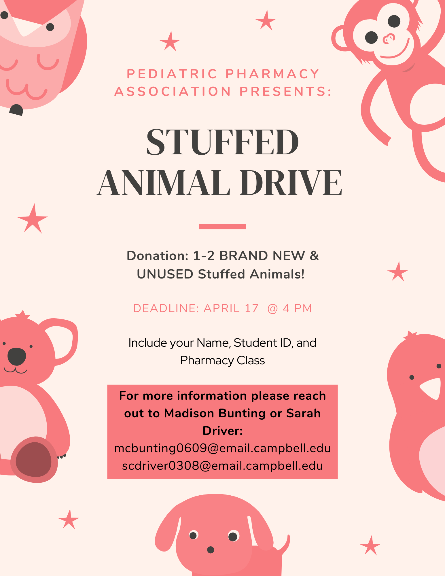 [Phar28] REMINDER: PPA's Stuffed Animal Drive- Extra Credit Available!
