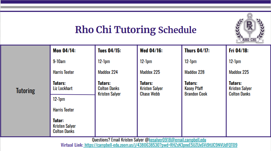 [Phar28] Rho Chi Tutoring 04/14- 04/18