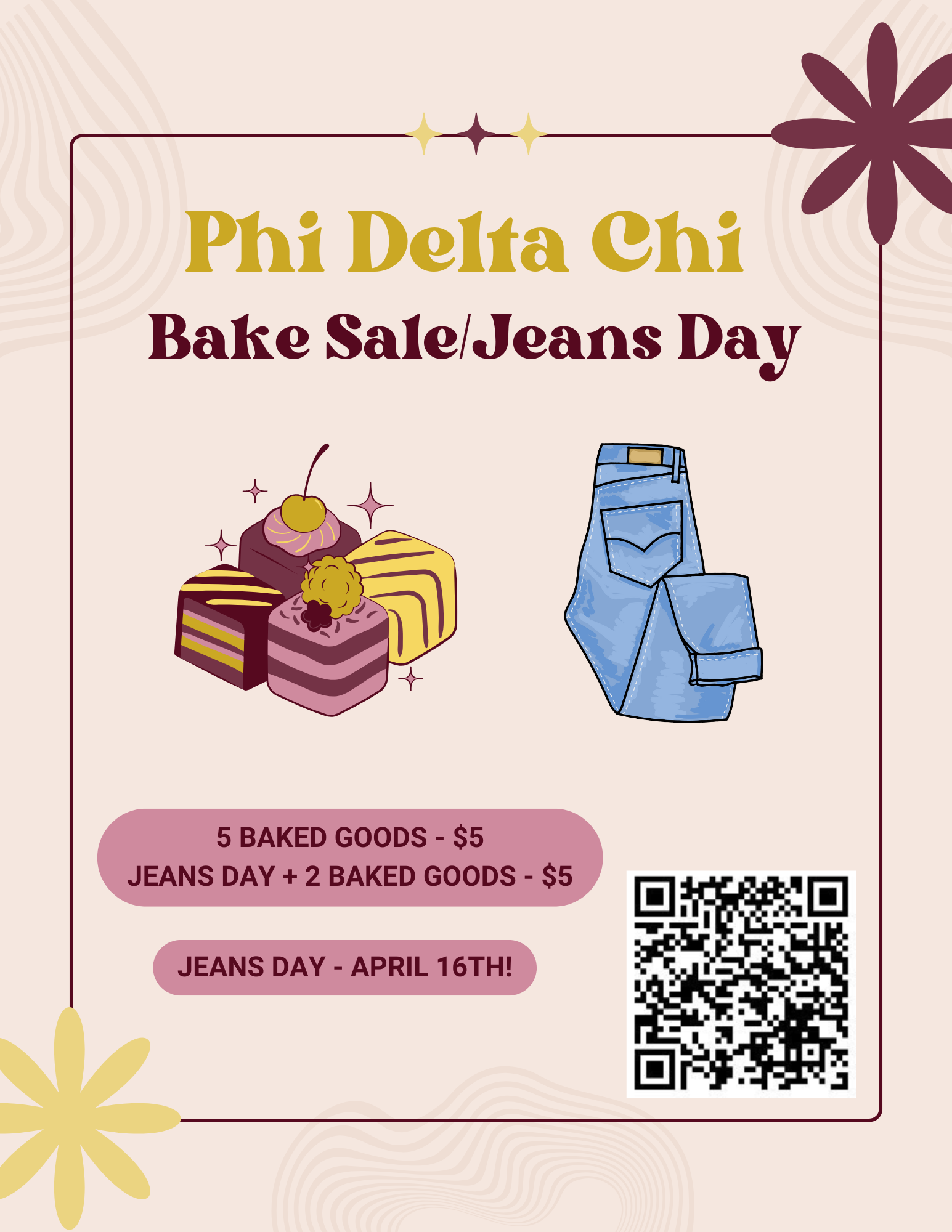 Phi Delta Chi is hosting a bake sale and jeans day this week (04/14 -