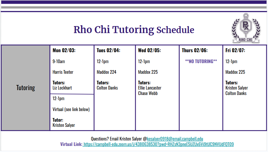 [Phar28] Rho Chi Tutoring 02/03-02/07