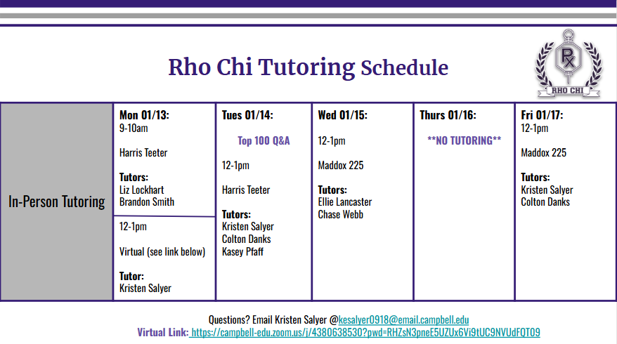[Phar28] Rho Chi Tutoring 01/13-01/17