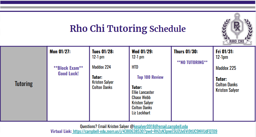 [Phar28] Rho Chi Tutoring 01/27-01/31
