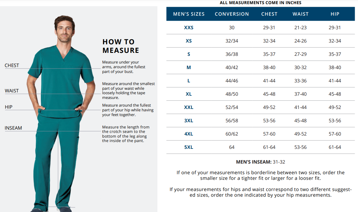 will be straight legged. The sizing charts, images of the scrubs, and logo