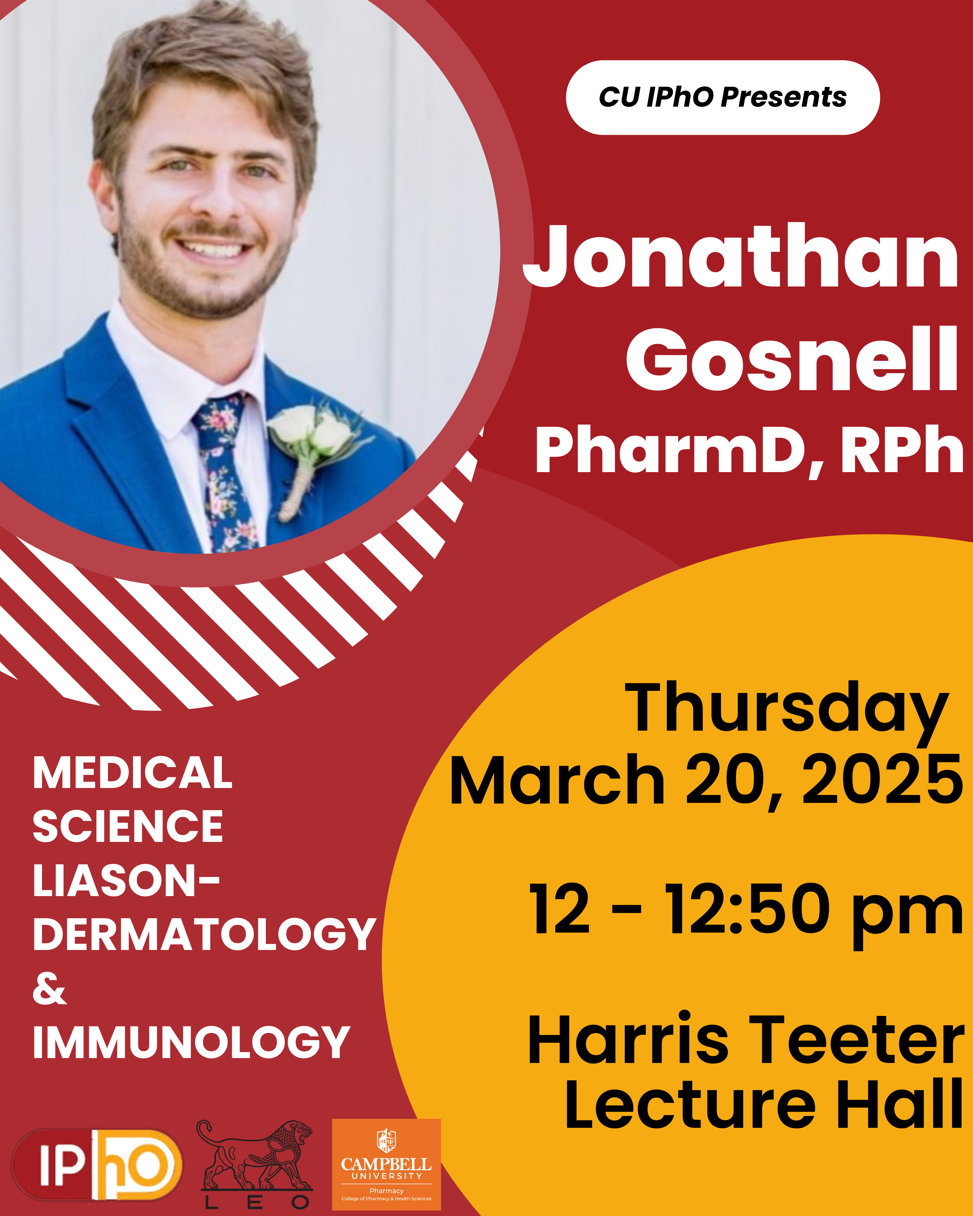 IPhO is hosting Campbell Alum *Jonathan Gosnell PharmD, *an MSL with LEO