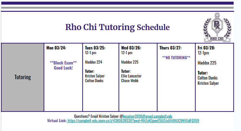 [Phar28] Rho Chi Tutoring 03/25-03/28