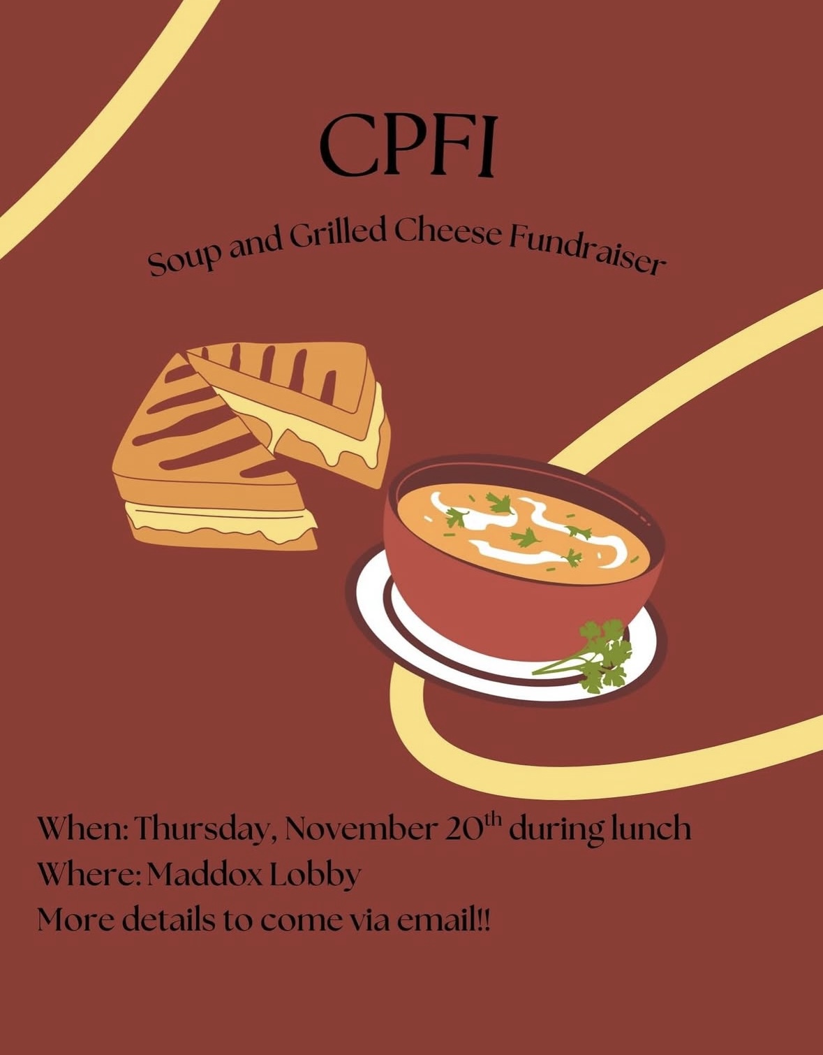 CPFI will be selling grilled cheeses and various soups tomorrow,