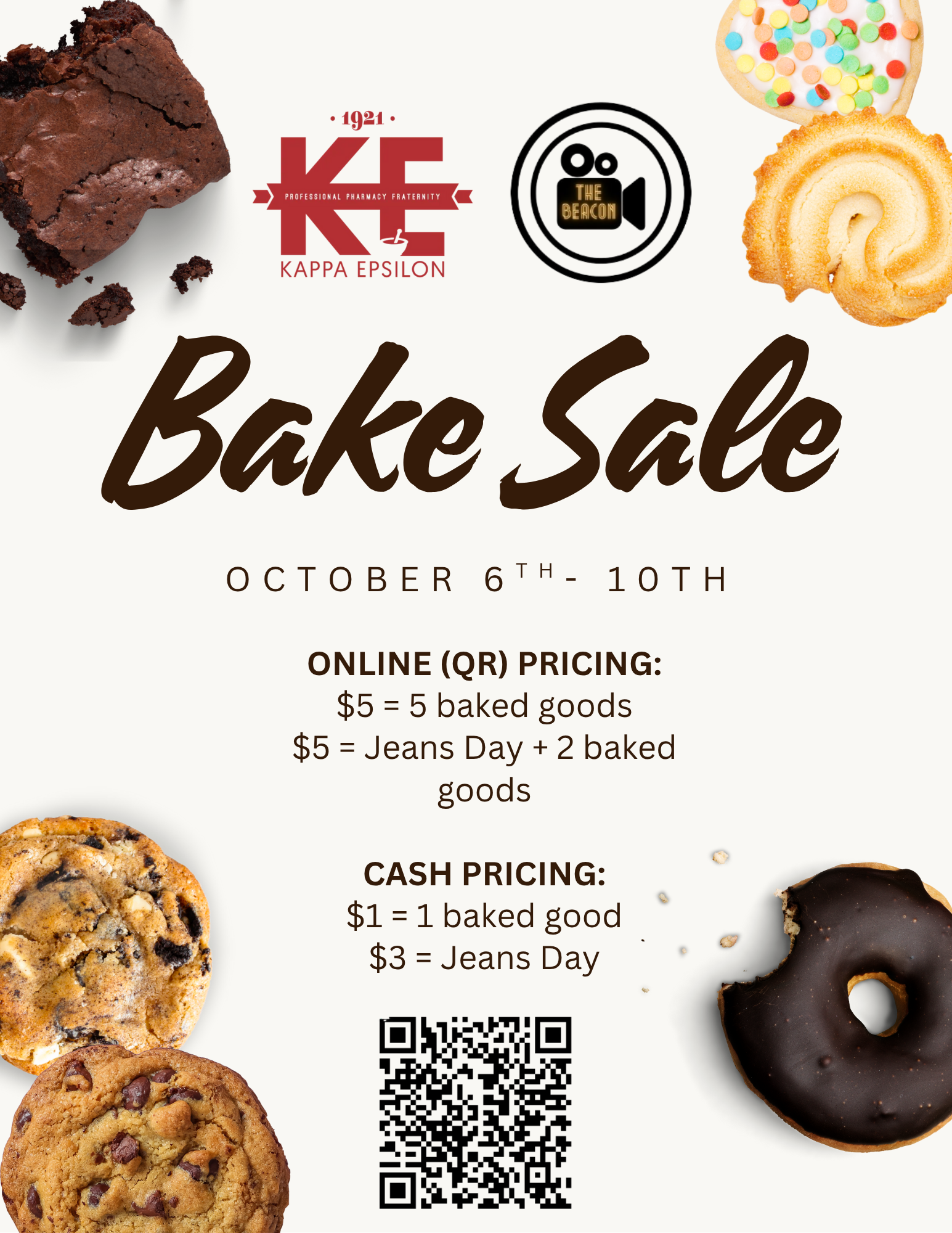 This week, *Kappa Epsilon* and *The Beacon* are hosting a *Bake Sale/Jeans