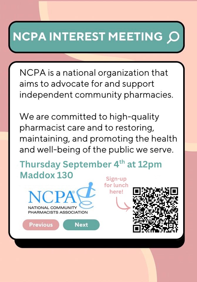 [Phar28] REMINDER: NCPA Interest Meeting Tomorrow!