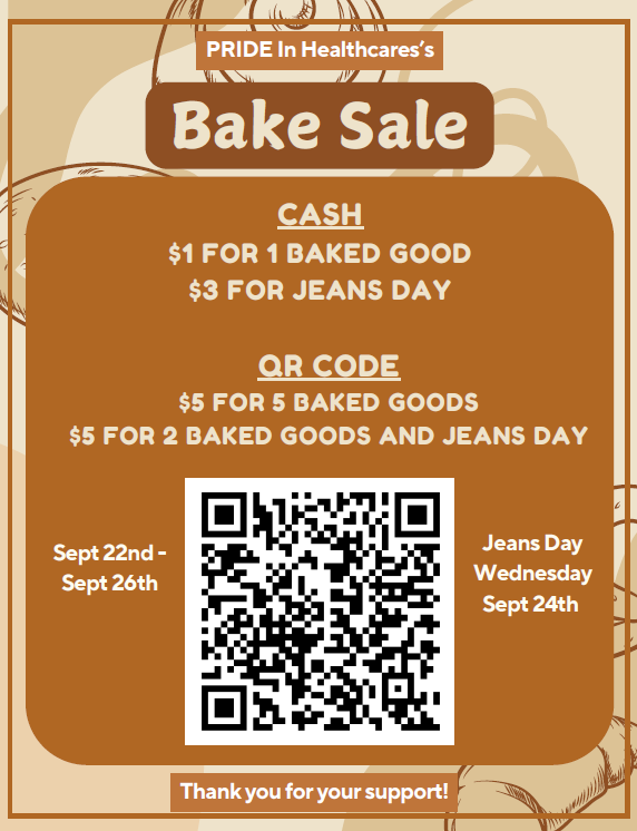 This week, PRIDE in Healthcare is hosting a Bake Sale/Jeans Day from *September