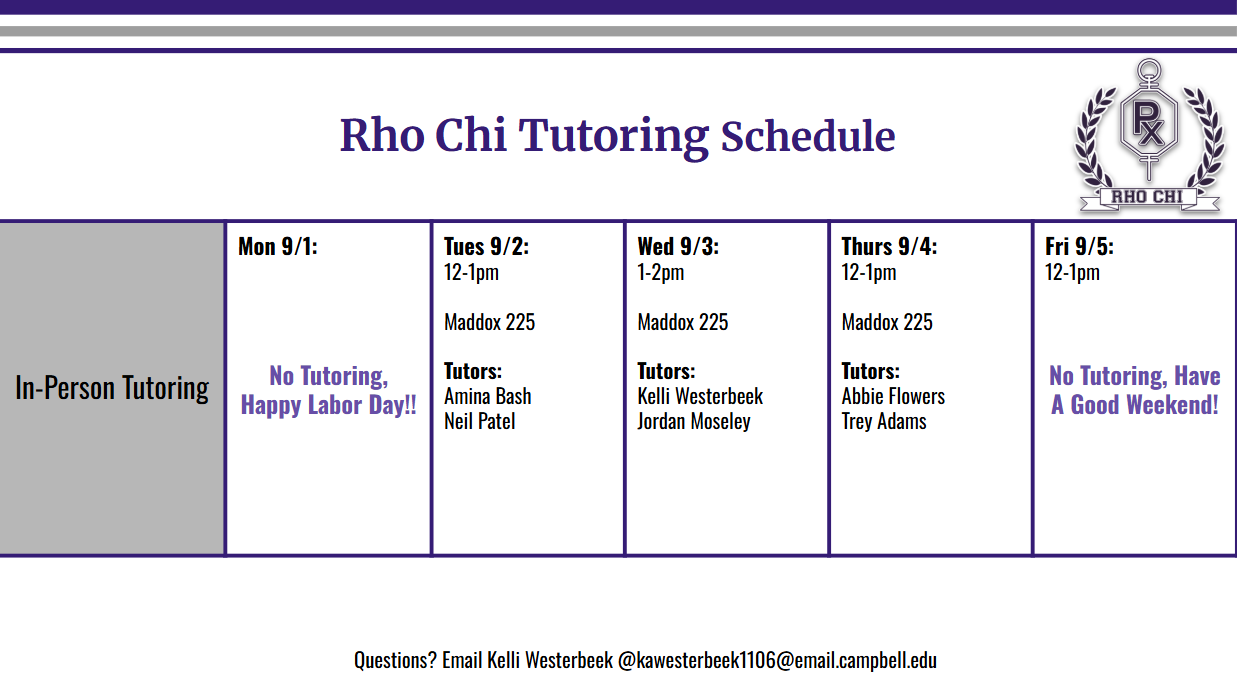 [Phar29] Rho Chi Tutoring 09/01-09/05