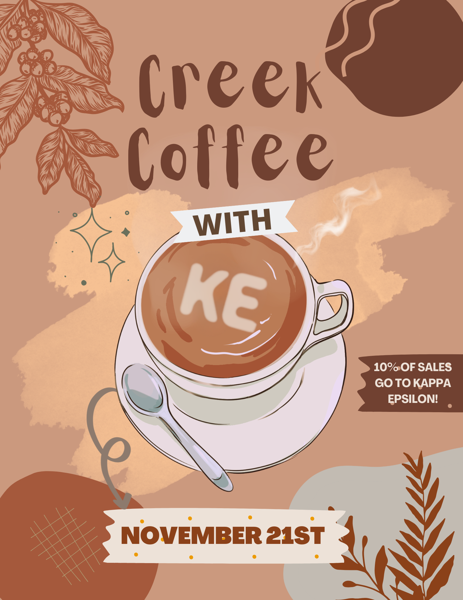 Kappa Epsilon is hosting a percentage day with Creek Coffee *TOMORROW*!