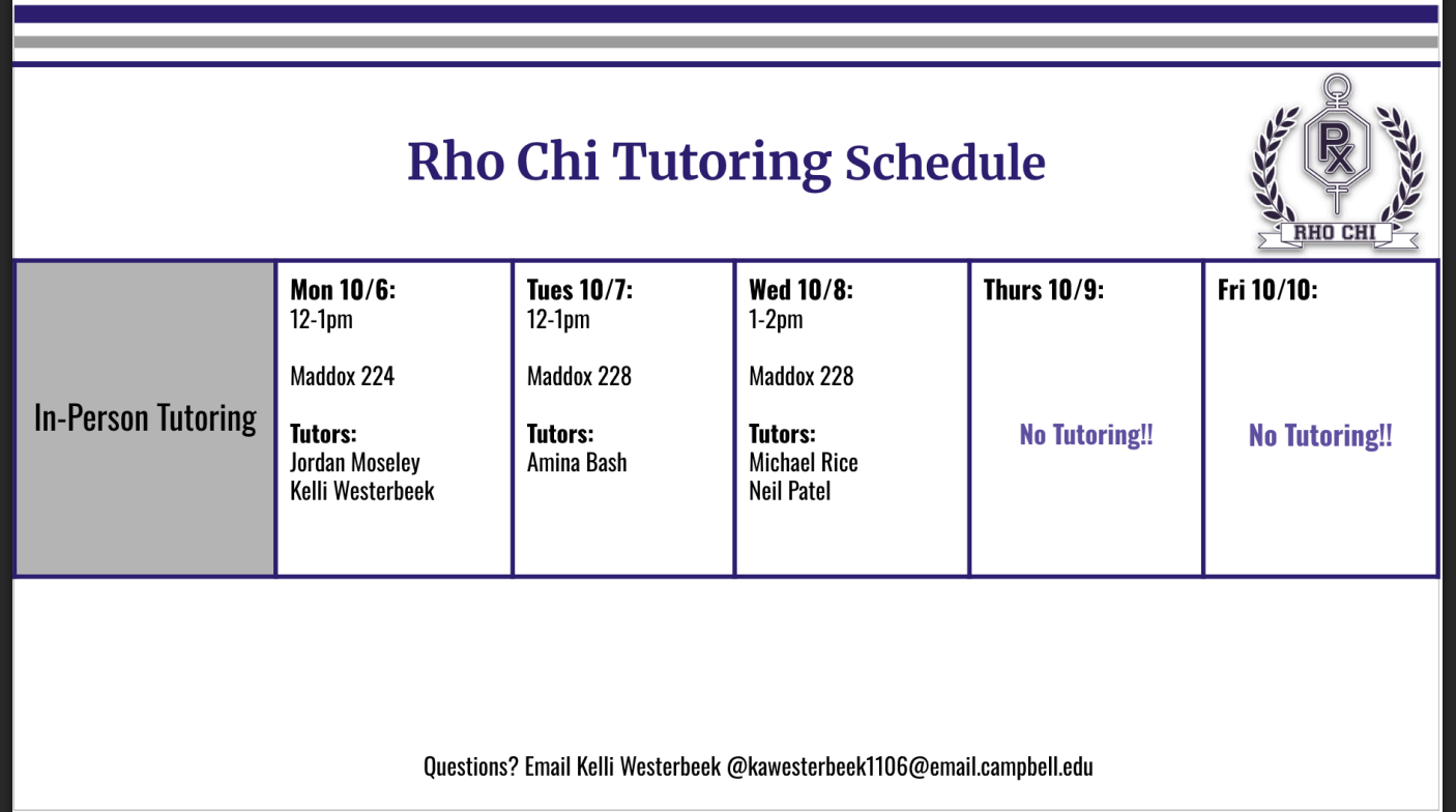 [Phar29] Rho Chi Tutoring 10/6-10/10
