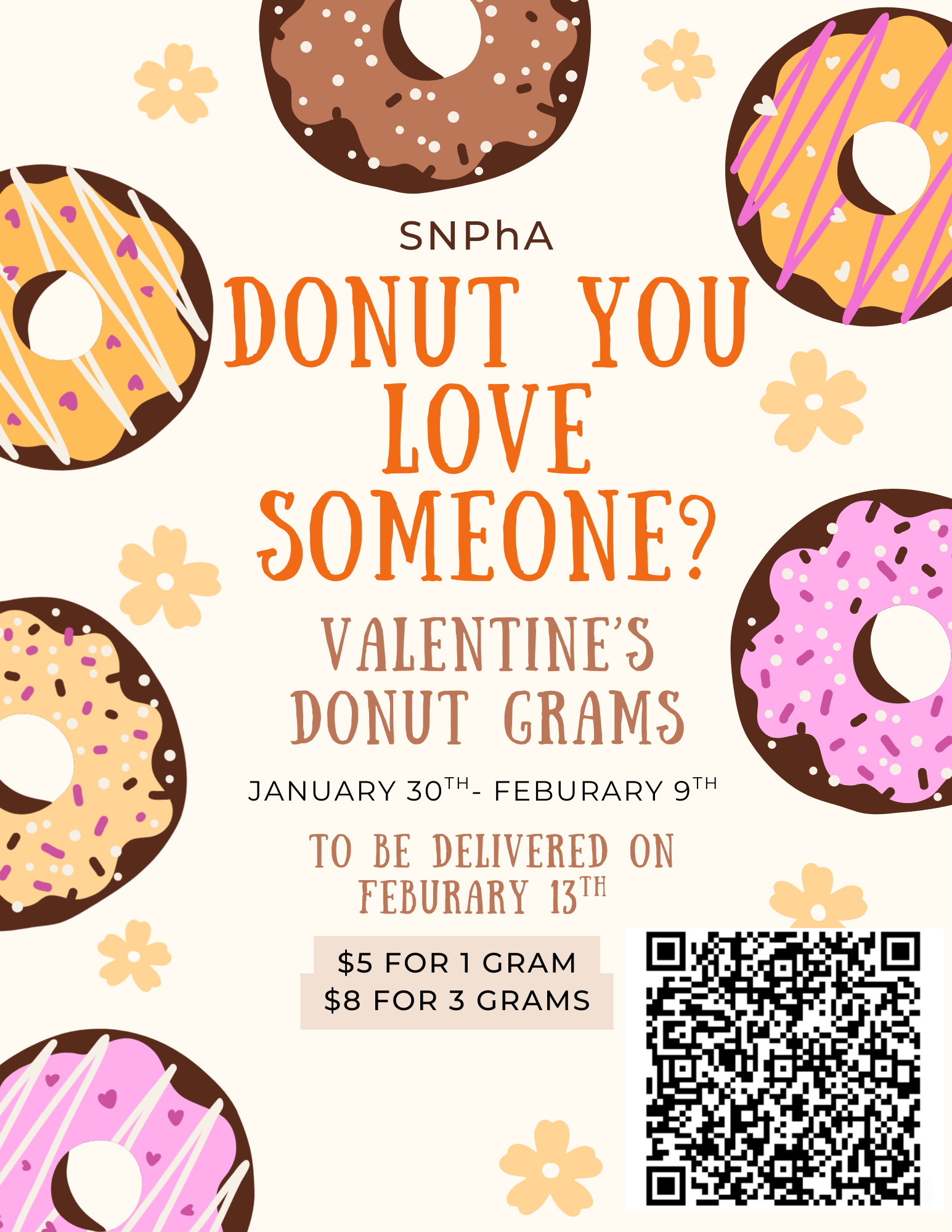 Donut grams will be delivered on February 13th