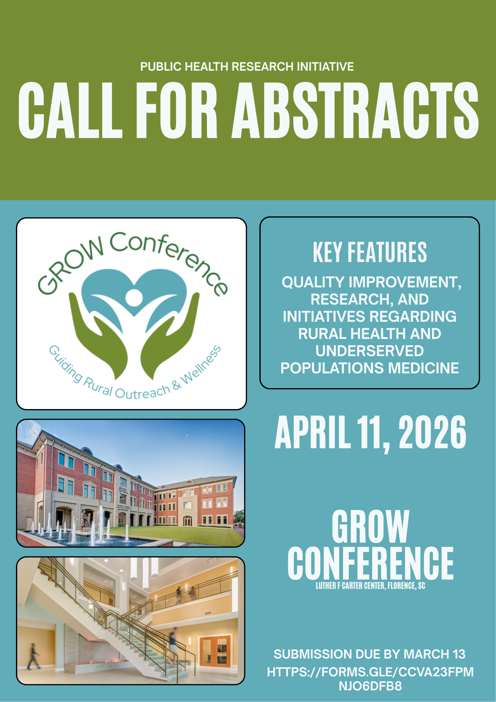 This is an interdisciplinary one-day conference in collaboration with the SC Center for Rural and Primary Healthcare that is occurring on April 11th, 2026, at the Luther F. Carter Center for Health Sciences Center in Florence, SC.