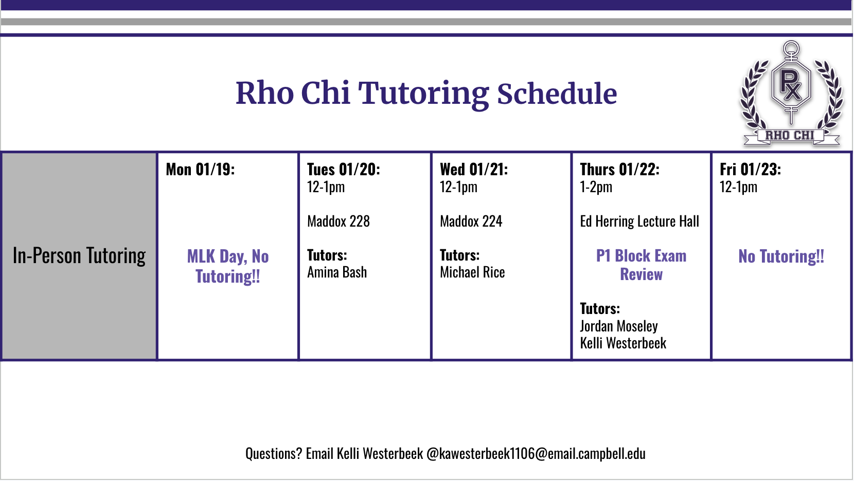 [Phar29] Rho Chi Tutoring 01/19-01/23